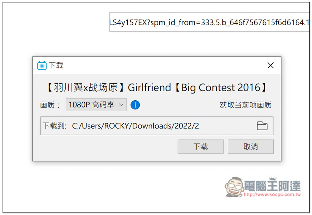 找到後預設為下載最高畫質,也能指定下載位置,沒問題就按下載: