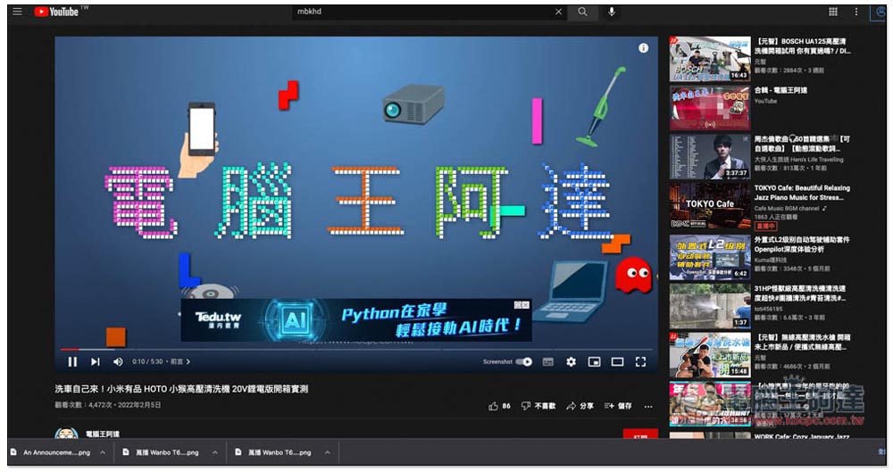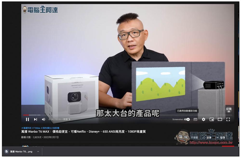 接著打開任一部 YouTube 影片後,底部控制器欄位會出現一個全新的 Screenshot 按鈕,也就是在自動播放功能開關的左邊,當你需要擷取 YouTube 影片畫面時,按一下這 Screenshot 按鈕,截圖就會自動下載到電腦: