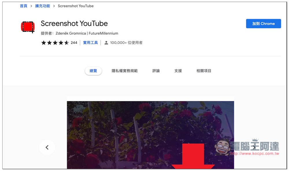 進到 Chrome 商店後,點擊 “加到 Chrome",目前這款工具已經有超過 10 萬用戶安裝,評價高達 4.6 顆星,由此可見有多好用: