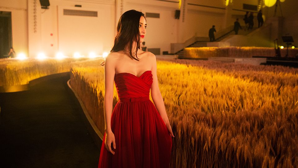 楊穎Angelababy一貫的公主風造型,艷紅色的仙女裙搭配紅唇妝,美但是就是沒什麼新意。