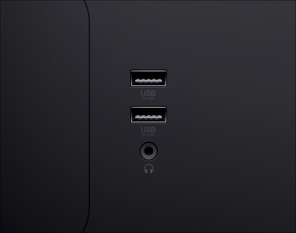 接口方面, Xiaomi 27 型 2K 電競螢幕支援 DP、HDMI、3.5mm 音源插孔和 USB 3.0 接口,亦可在工作時使用顯示器為手機進行充電。