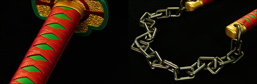 這次《鬼滅之刃》宇髓天元的日輪刀延續過往將原作裡相同的「尺寸」,既然身為 PROPLICA 系列商品,當然在細節還原度也相當到位,從刀柄、刀鍔、刃紋、鎖鏈以及經典的「惡鬼滅殺」刻字等細節都完整保留。最近, BANDAI 也於 2 月 10 日宣布這款商品開放訂購。