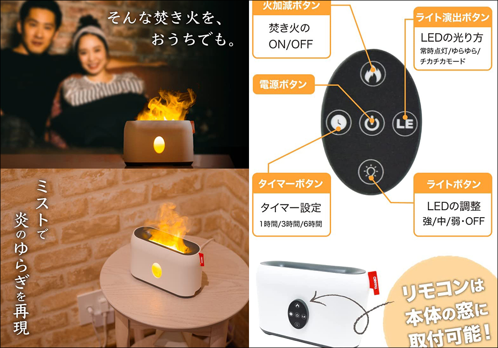 Thanko 推出火焰加濕器,讓室內創造宛如營火般的光與水霧