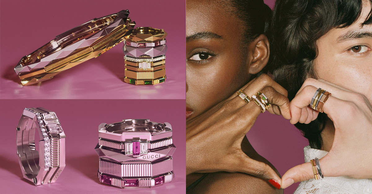 Gucci在去年度過100歲週年里程紀念後,便在創意總監Alessandro Michele大舉進軍高級珠寶領域,而第一個創作的系列,首推「Link to Love」!以其簡潔流暢的八邊形造型,融入一些盛行於80年代的復古美學設計細節,如:無紋飾鏡面設計、飾釘或豎條紋刻花;並透過可自由疊戴、混搭的述求,為該系列珠寶帶來豐富的百搭及可塑性。自推出後即成Gucci主打的日常高級珠寶,深受不少粉絲買單。