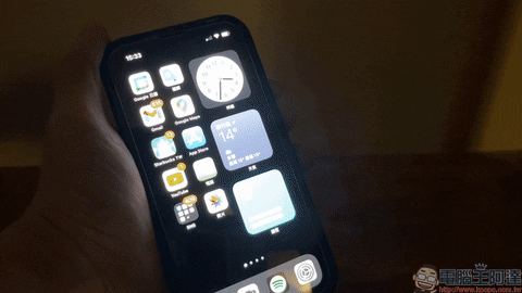 不過上述的教學在截圖上無法呈現螢幕亮度的變化後實際的效果,以下先示範當直接在不調整亮度前提下直接利用 iPhone 縮放調整低光源模式。可以發現當開啟後, iPhone 畫面的亮度明顯變暗許多。