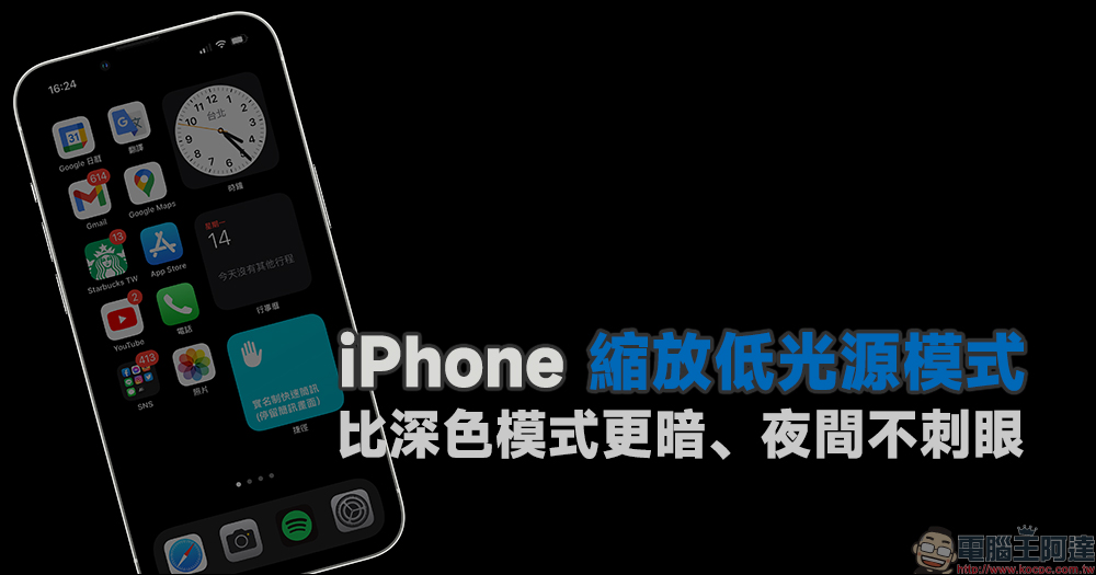 在夜晚或些光線昏暗的環境下使用手機,如果不希望 iPhone 的螢幕顯示亮度太過於刺眼,除了手動調整螢幕亮度,許多人會選擇的就是將 iOS 的系統外觀設為「深色」模式。然而,這些常見的做法當處在睡前的臥室或周遭全暗的環境(例如:電影院),手機螢幕的亮度多少還是稍顯過亮。