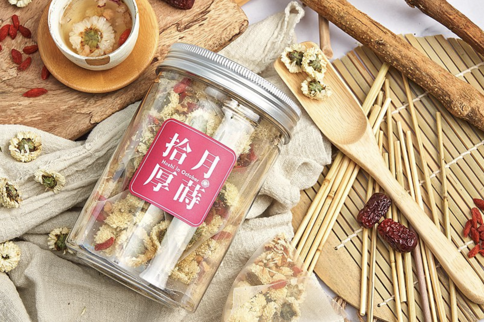 嚴選友善栽種的菊花及藥材,歷經3段隧道式熱空調烘乾技術15小時,將獨特的花香牢牢鎖住,搭配枸杞、紅棗,讓下班後疲憊的身軀、眼睛都能得到療癒放鬆、擺脫疲勞感~不僅可以作為日常保養的熱茶,也可以添加至雞湯、甜湯一起燉煮喔~