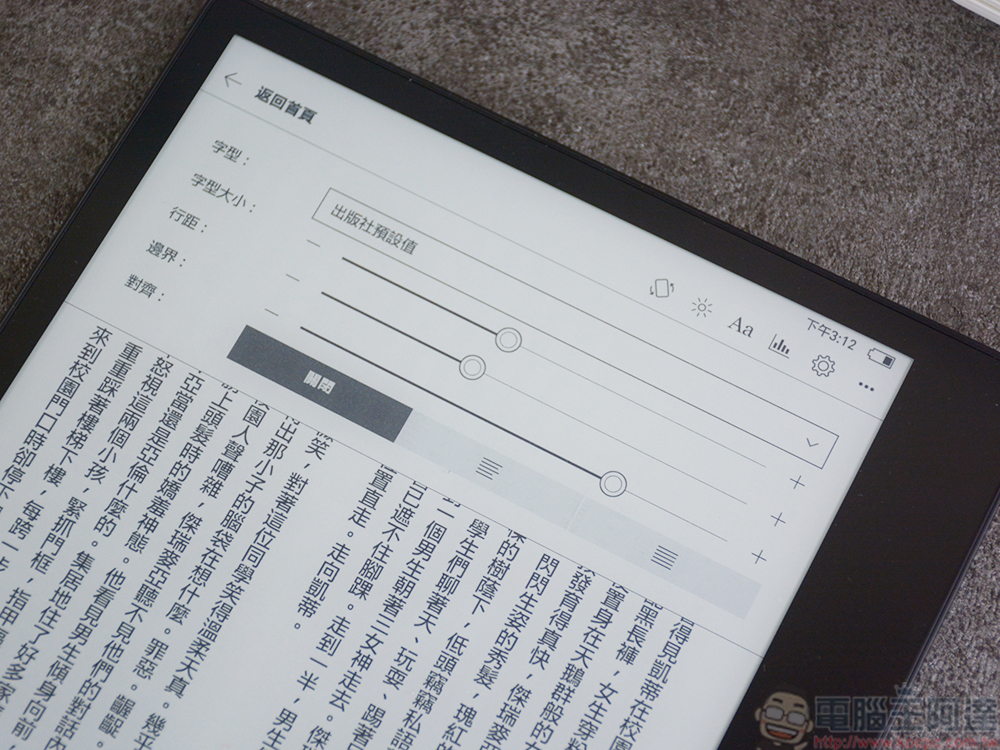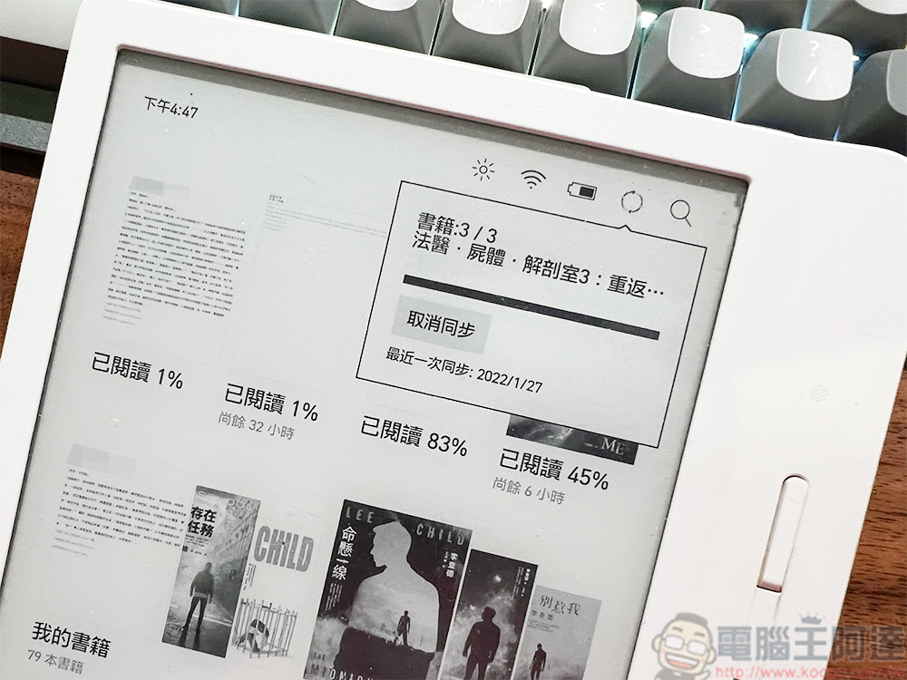 雖然很多人會在手機上的 Kobo 應用程式中閱讀,不過像筆者就喜歡在我的 Kobo 電子書閱讀器上看書,電子紙低藍光看久眼睛不累,字體大小與行距都可以依照我的喜好來自訂,舒舒服服徜徉書中世界。想要將買好的 Kobo 電子書匯入非常簡單,只需將閱讀器連接上 WiFi,點選電子書閱讀器右上角的同步圖示。系統會自動刷刷刷地快速將已購書冊同步到閱讀器的書庫中,完全不用手動去處理,快速又方便。