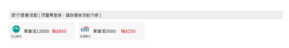 - 同享銀行優惠,還有眾多站內活動