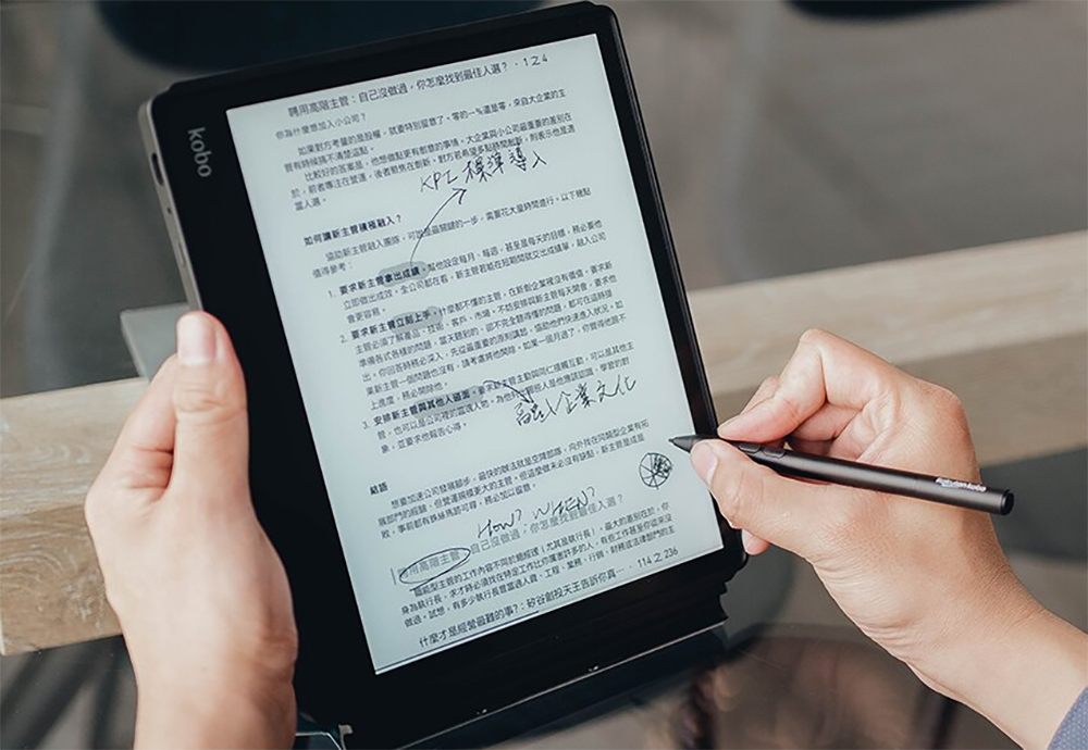 Kobo Elipsa 算是 Kobo 旗下近期最大尺寸、最高階的款式,10.3 吋的視野不僅讓你閱讀更舒適,還配備了觸控手寫筆,無論是在書冊中做筆記,還是將它當作開會、課堂上的電子手寫筆記本,一鍵將手寫筆跡轉換成數位文字,匯出運用最靈活。內建 32GB 容量讓你放入超過 24,000 本書籍,重量卻僅有 383 公克,加上簡明、直覺的操作介面與不對襯的側框設計,無論你是左手人、右手人,握持、操作皆順手如意。