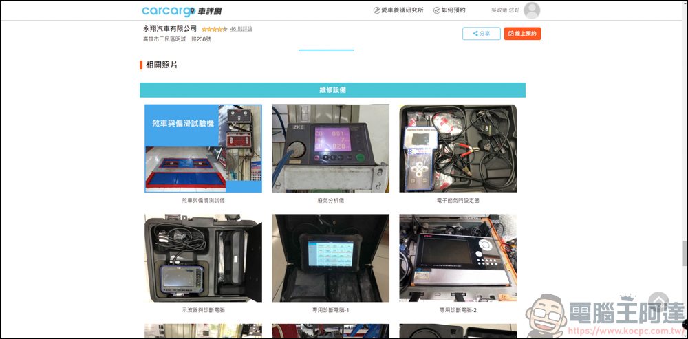 該保養廠的維修設備也可以在頁面上看到設備的照片,清清楚楚地了解該廠有哪些設備: