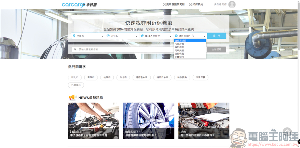在首頁,carcargo車評網會不定期的提供目前的優惠和最新消息,也會有近期網友大推的保養廠: