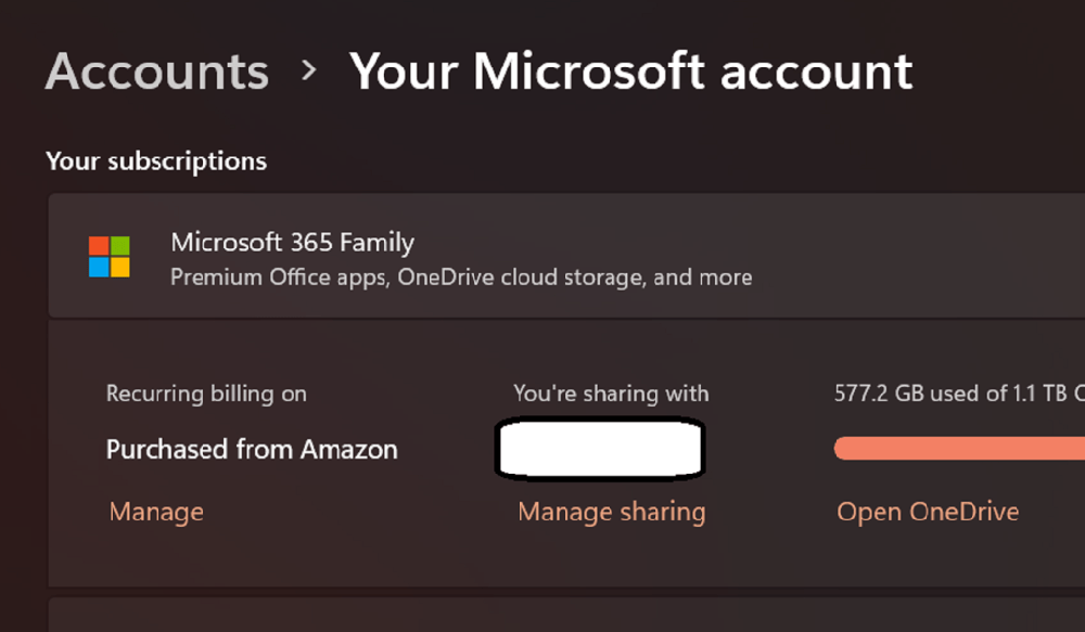 根據外媒 PCWorld 的發現,現在設定功能表中的 -> 帳號 -> Microsoft 帳號,頁面最上方就會找到全新「你的訂閱(Your subscriptions)」項目,顯示你微軟帳號訂閱 Microsoft 365 的相關資訊(如果你有訂閱),另外還有已經使用多少 OneDrive 雲端空間等訊息: