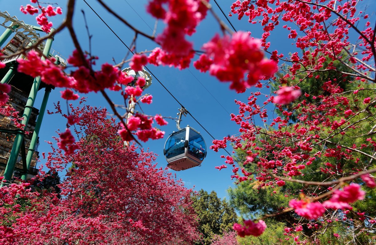有最美櫻花樂園之稱的「九族文化村」,園內櫻花紅粉交織的景象也開始陸續攻佔各大社群媒體版面啦!櫻花季期間還能搭乘纜車從空中欣賞粉色櫻花林、飽覽日月潭美景,那感覺真的是太愜意了~妞妞們還能租浴衣、和服在櫻花樹下野餐,沉浸在櫻花雨中濃濃的日本氛圍。而且每天晚上更有夜櫻點燈儀式,將由大祭師與舞者帶領遊客參與,一起為夜櫻的活動點燈,並開始限定的表演節目。