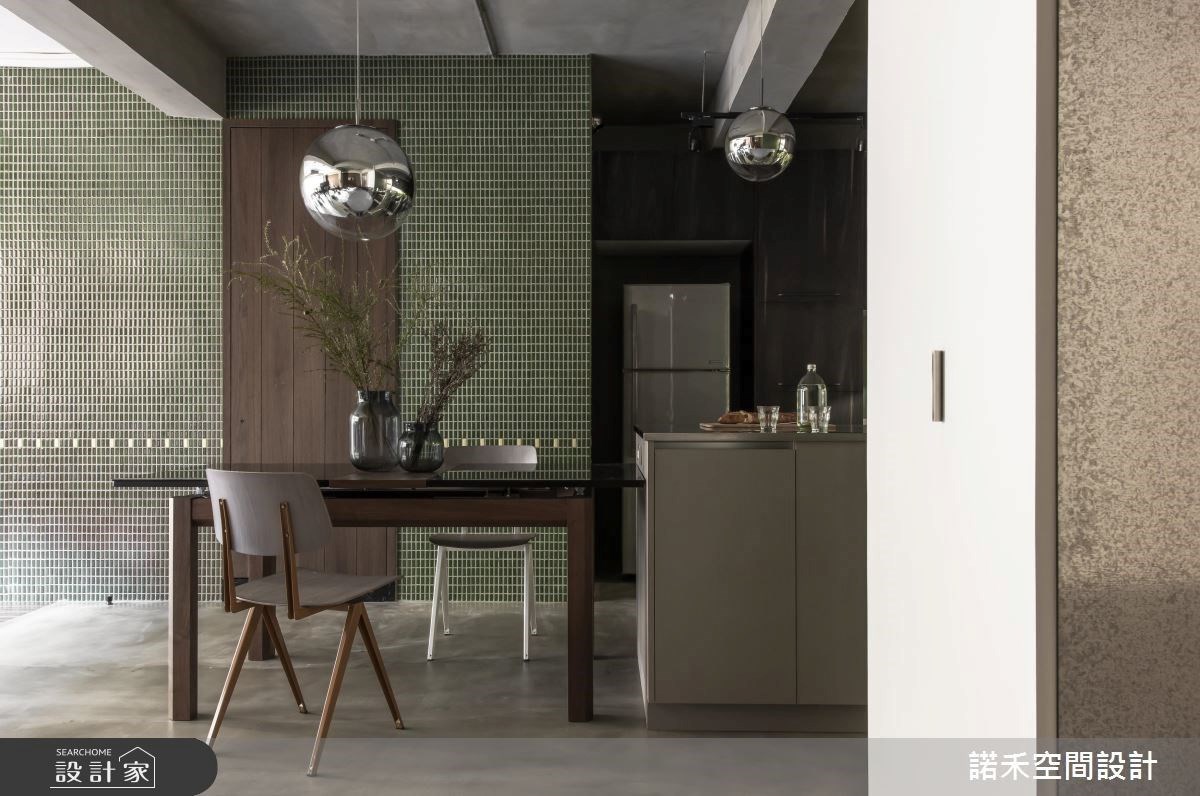方格較小的馬賽克磚和腰帶設計,是相當經典的復古風格元素,除了台灣早期建築常常使用,也很有老香港的風情,細小的馬賽克磁磚堆疊,讓普通的牆面在式視覺表現上更加豐富,透過腰帶位置的設計,還能有修飾空間高度比例的效果喔!