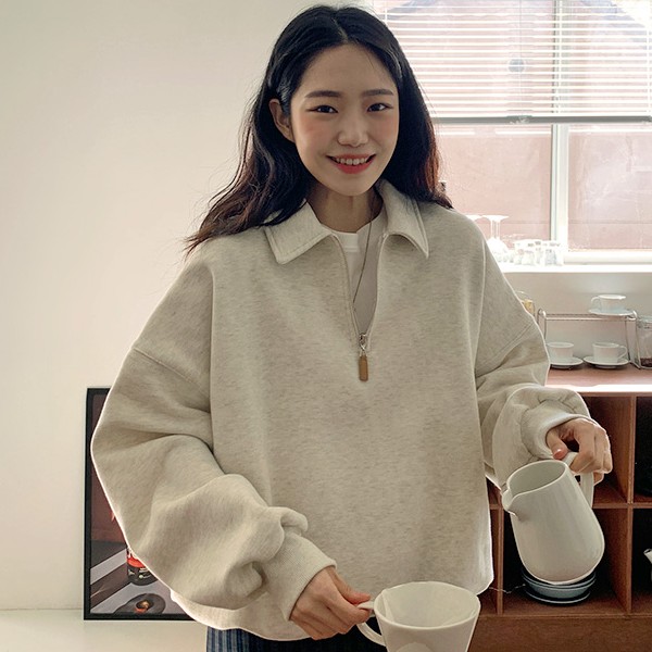 今年非常流行半拉鍊式的翻領上衣,市面上看到這類版型的衣服多為針織衫、毛衣,From Beginning 推出的此款則為大學T 材質,內刷毛設計特別適合初春微涼天氣,並有奶油、燕麥及亮灰三色供隨心挑選。只要擁有它,輕鬆便能打造出俏皮滿點的韓系復古穿搭!