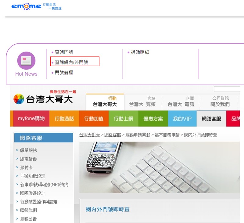 若是中華電信或是台灣大哥大用戶則可以至「emome 網內網外電話查詢」及「台灣大哥大網內外電話即時查」,輸入會員與帳密後,就可以免費查詢是否為網內網外電話。