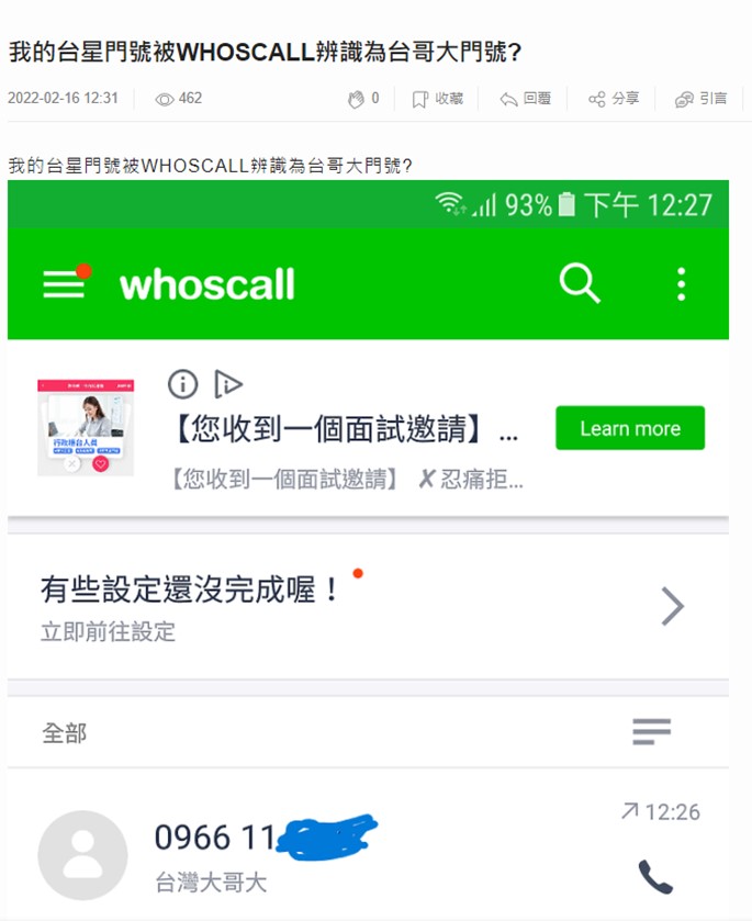 1.為何台灣之星的門號被Whoscall判定是台哥大門號呢?