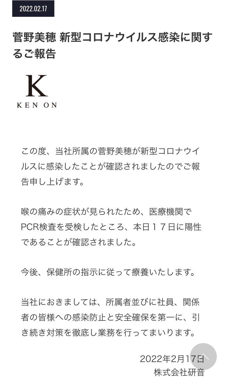 消息傳出後粉絲都擔心老公堺雅人與一對兒女有沒有受到感染,而菅野美穗的經紀公司也表示:「菅野美穗因出現喉嚨痛的症狀,因此前往醫療機關進行PCR採檢,在17日接獲陽性通知,目前遵照保健所的指示在家中療養。」雖然公司沒有公佈感染源頭,但相信是工作期間被感染。
