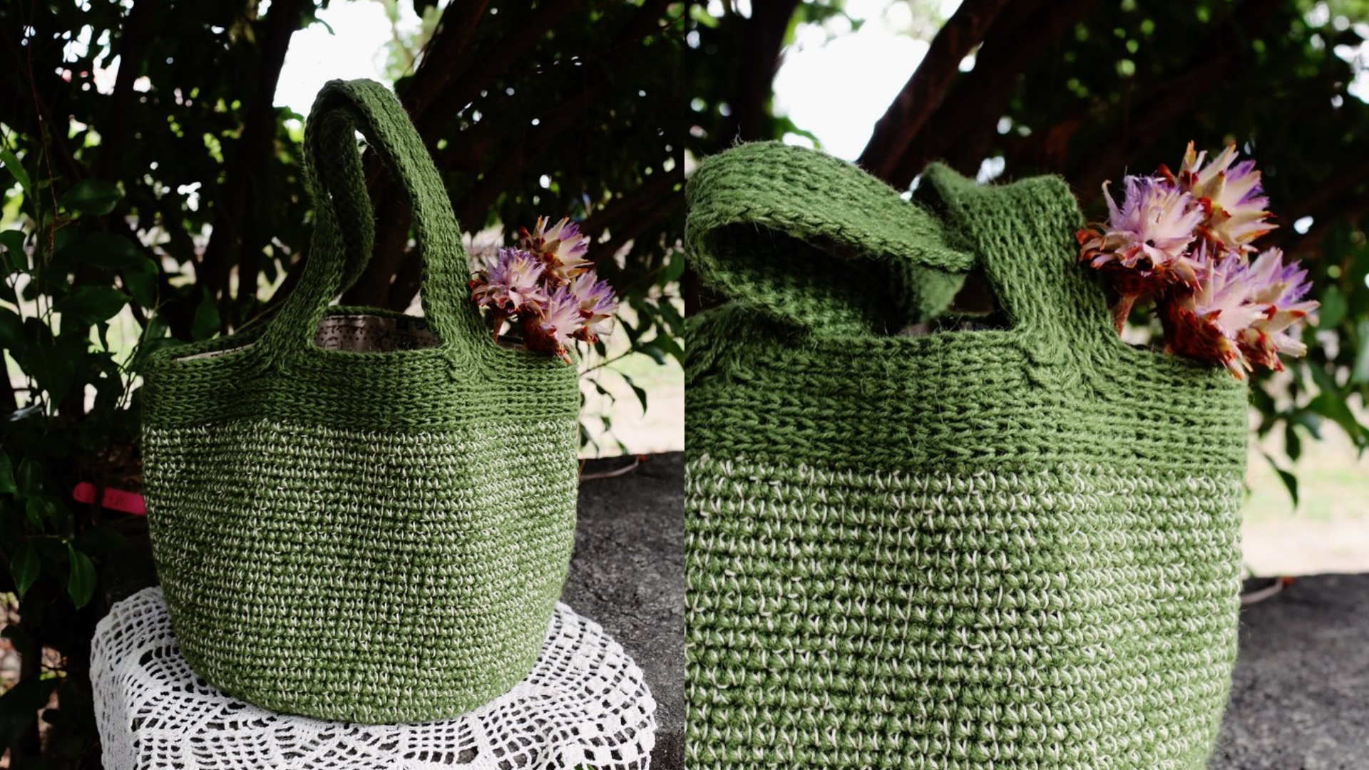 台灣設計品牌 chichi hand made 的這款手提包,選用 MIT 黃麻一針一線縫製而成,每款都是獨一無二的商品,充滿手作的溫度。透過段染技術打造出兩種大地綠色,背起來時髦好看,包包還附有內裡設計,質感非常好。