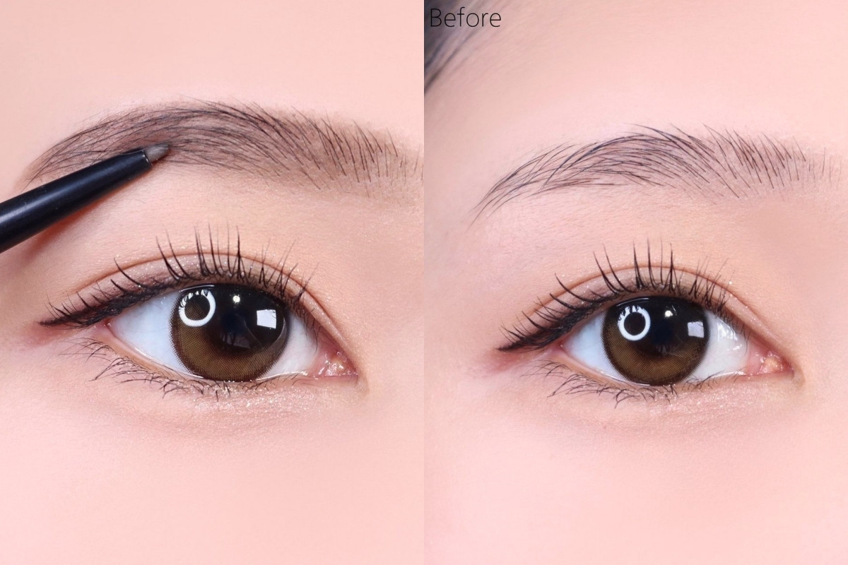 眉眼間距可以依照眼睛高度為基準,眉眼間距超過眼睛高度的話、是眉眼間距比較寬的眼型,雖然眼妝會有比較大的發揮空間,但很容易有無神或是腫泡感,這種眼型適合畫稍微粗一點的眉毛來修飾無神感,畫眉毛時,可以在眉毛下方往下畫一點、縮短眉眼間距,眉頭也強調一下眉毛毛流感,顯得更加有精神。