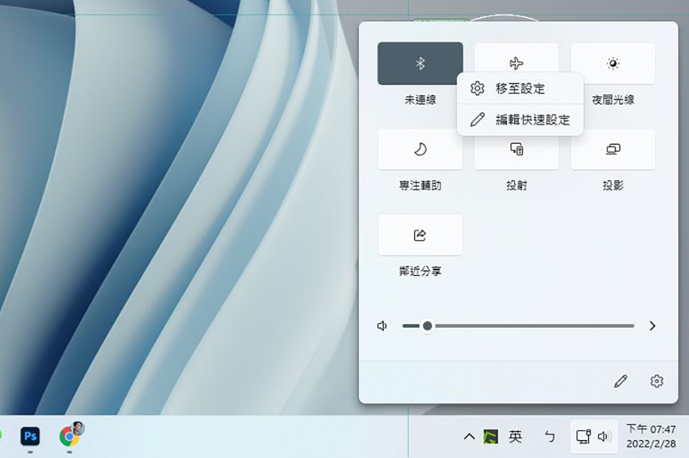 雖然目前在 Windows 11 上的快捷托盤裡面已經存在一個藍牙按鈕,但它能作到的頂多就是開啟與關閉藍牙功能,如果你想要連接到特定的設備,還必須用右鍵點下該圖示後,打開設定視窗去查找新設備或是連接已經配對過的裝置,整體使用來說也沒有真的起到「快捷」的作用,頂多就是打開設定比較快而已。
