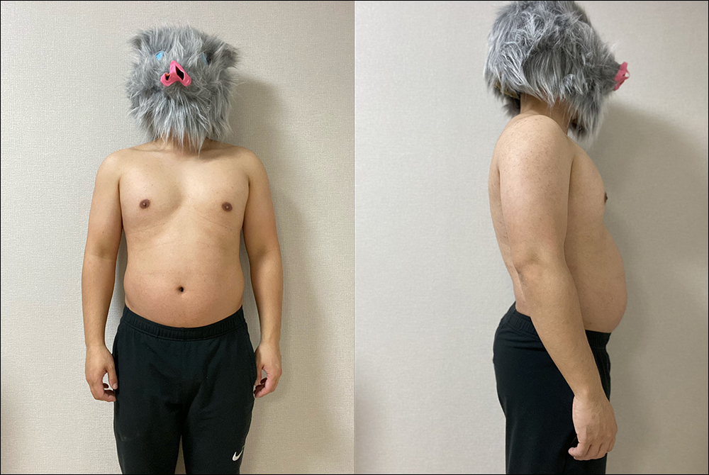 在訓練的第一天時當時他的體重為 70.1 公斤、站立時有點肚子就像沒有運動的一般人一樣。