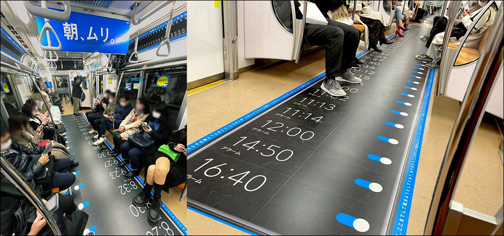 日本樂敦勁Z!眼藥水推出創意電車車廂廣告,點了它就像手機鬧鐘整排全開超清醒!