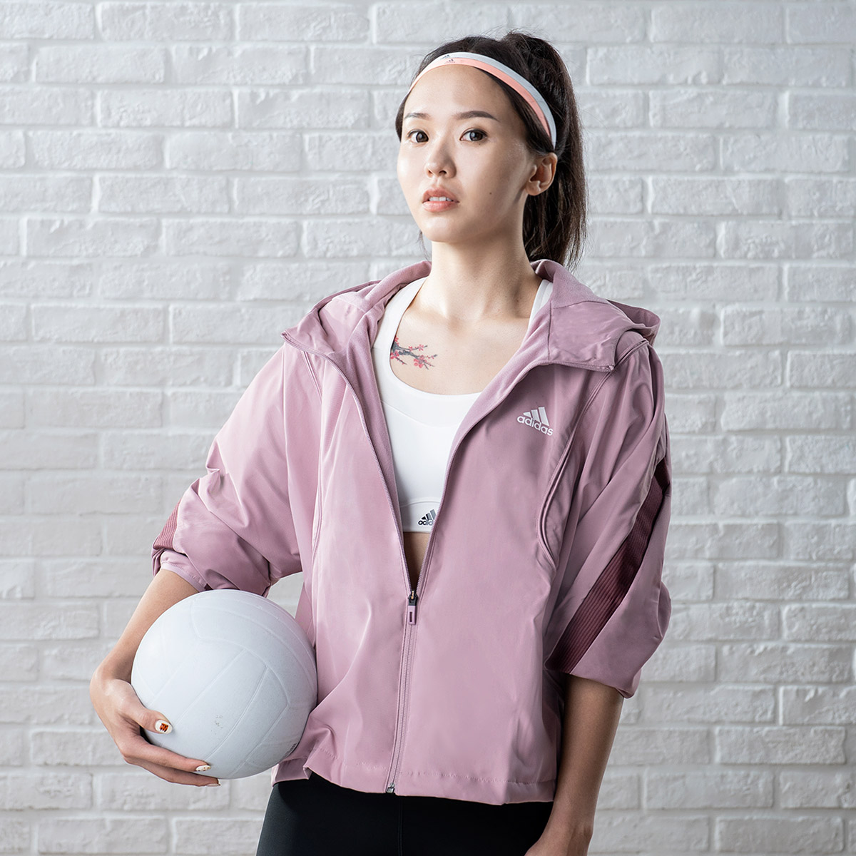外出運動必備的adidas運動外套來了!早晨微涼可以穿上稍微保暖身體,豔陽日還能遮陽,非常的實穿。這款外套風格很簡約,讓你穿起來舒適又有氣質。簡潔的設計線條,視覺上更有腰身,低調又不失時尚。排球選手廖苡任身高164cm,穿上連帽外套氣勢十足。