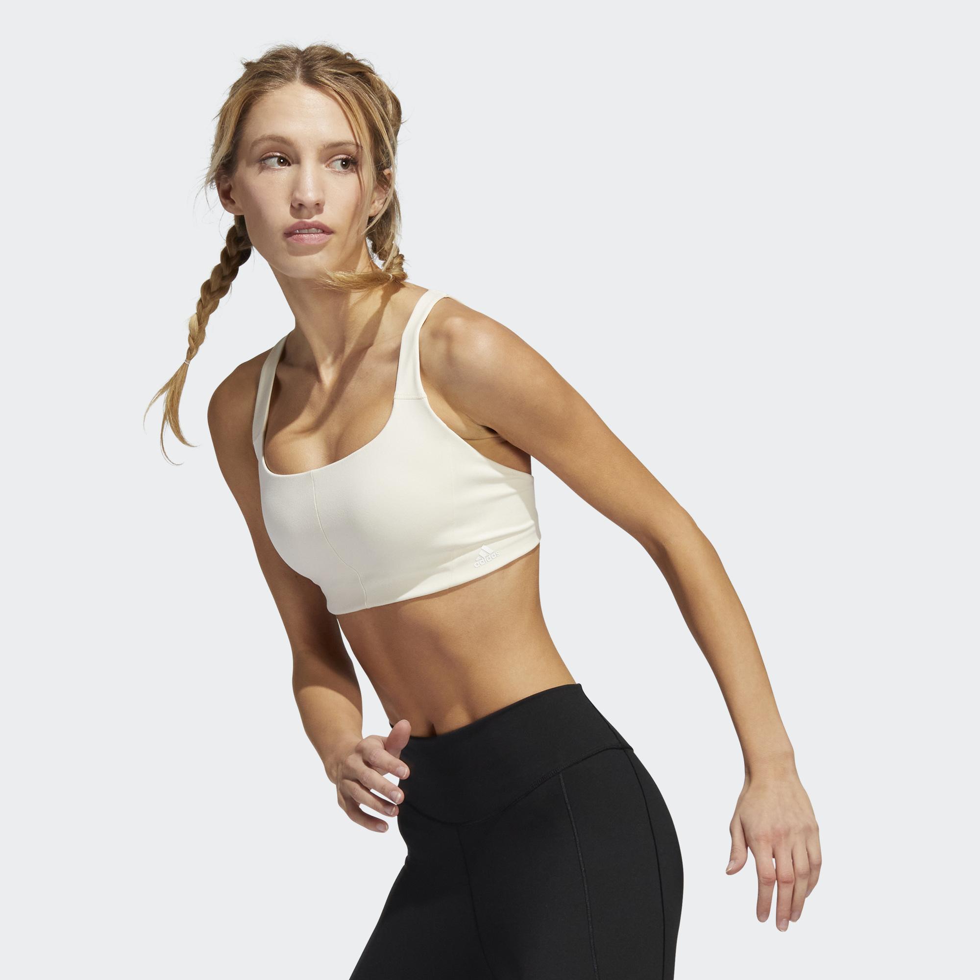 這一款adidas運動內衣,最亮眼的特色,就是背部肩帶交錯設計,搭配露背上衣,微微露出線條,性感又時尚呢!穿這件在健身房裡,你最亮眼。使用Adisoft面料,讓你在做運動,不論是轉身、屈體、伸展的時候,都不會感到約束感。搭載AEROREADY科技,穿著超舒適,這件運動內衣,適合什麼樣的運動呢?中強度運動OK!像是瑜珈、普拉提。