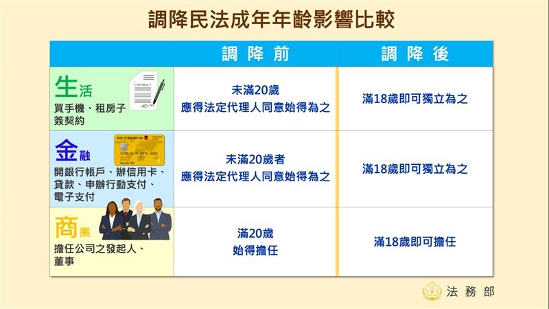 ▲112年1月1日以後民法將成年年齡由20歲改為18歲