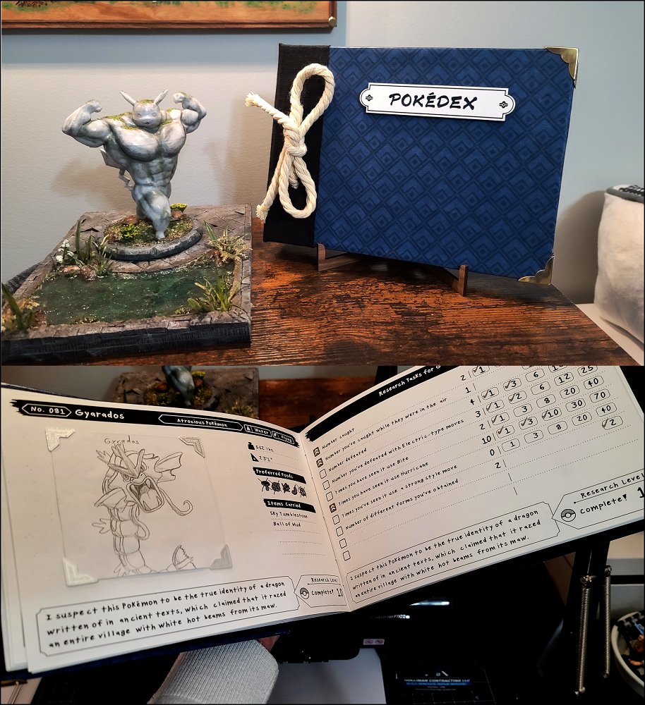 一位名為 Whengeekscraft 的 Reddit 用戶最近在《寶可夢傳說:阿爾宙斯》的討論版上向社群中的其他玩家們分享了這個創作,同時展示了介紹「暴鯉龍」的介紹頁面。就如同《寶可夢傳說:阿爾宙斯》中的設計,這份寶可夢圖鑑手冊在外皮的部分採用了藍色調的紡織材質,並綁上了一根繫繩,邊角的部分也有著銅片保護,至於內容除了寶可夢的基本介紹之外,還包含了來自《寶可夢傳說:阿爾宙斯》遊戲中的一系列觀察任務、捕捉次數和研究等級等細部資訊。然而,寶可夢本身的圖片則採用了純手工的方式繪製而成,而非像遊戲中那樣直接用 3D 建模的圖片。