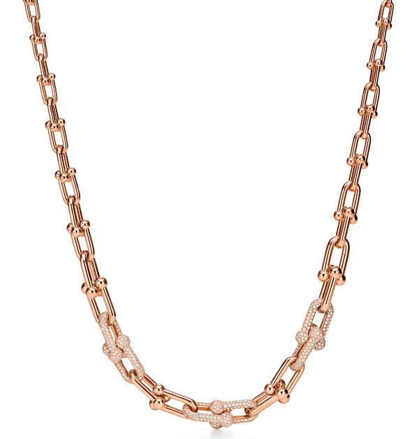 18K玫瑰金鏈結設計鑲鑽項鍊,NT$ 2,045,000。