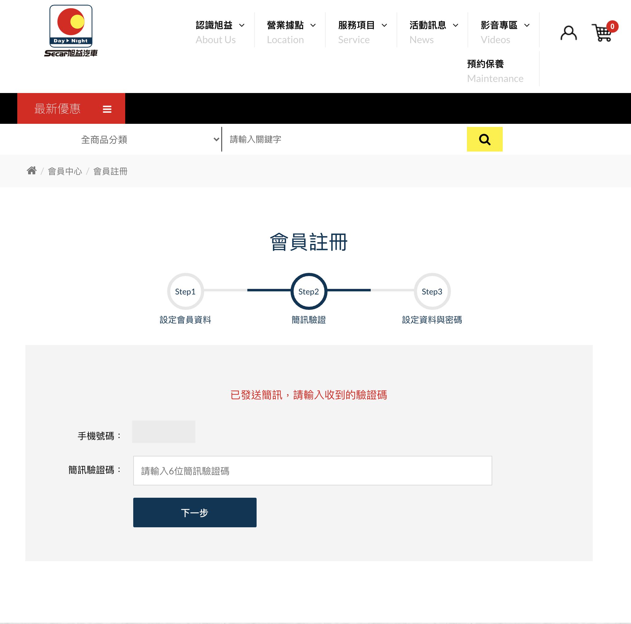 步驟2. 輸入手機號碼,進行簡訊驗證手續。