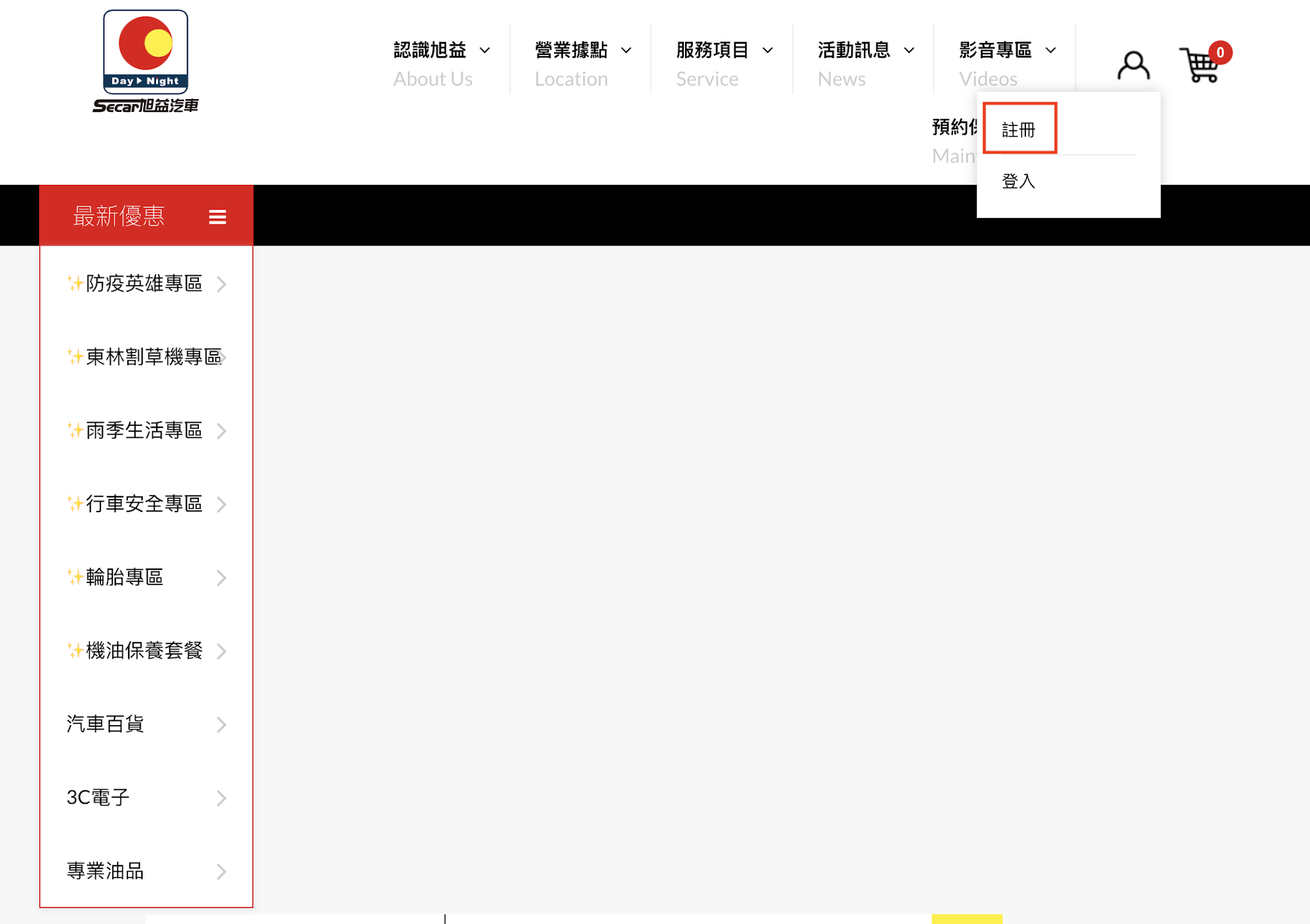 步驟1. 進入旭益汽車官網後,點選右上角人物圖示「註冊」。