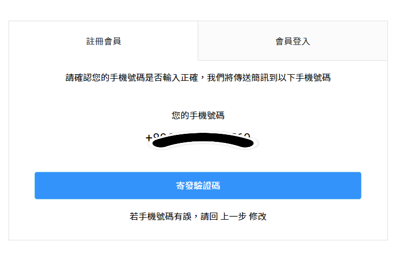 2. 填妥基本資料送出,點選「寄發驗證碼」