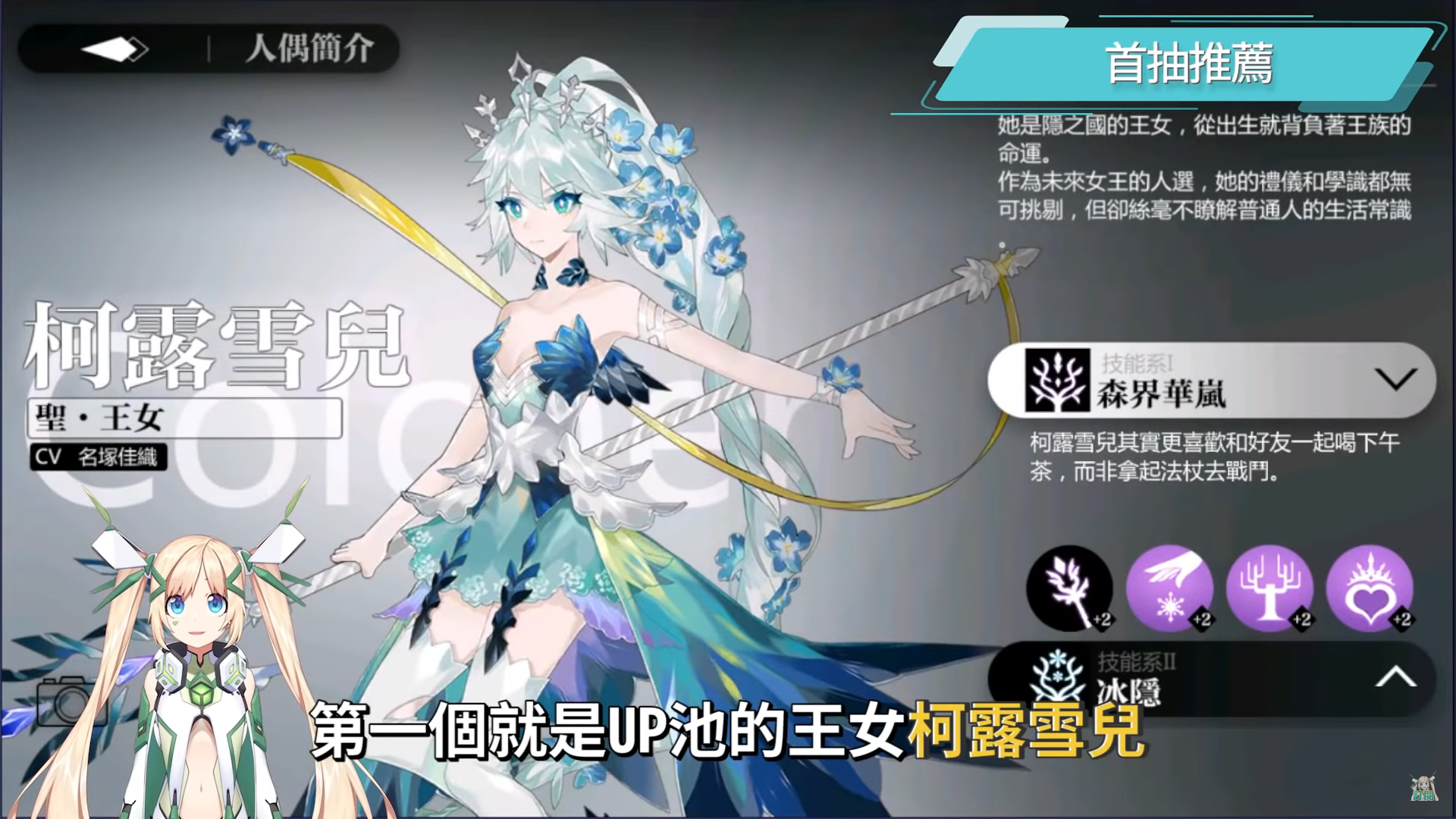洛洛心目中的首抽排行第一名是柯露雪兒,目前版本最好用的萬精油治療角色,但由於現在有UP池所以比較推薦大家可以先抽其他角色當首抽,再去UP池補上雪兒。