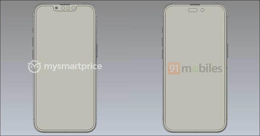外媒釋出 iPhone 14 Pro 和 iPhone 14 的 CAD 渲染圖, 14 Pro 採用「驚嘆號」打孔螢幕與大尺寸主相機