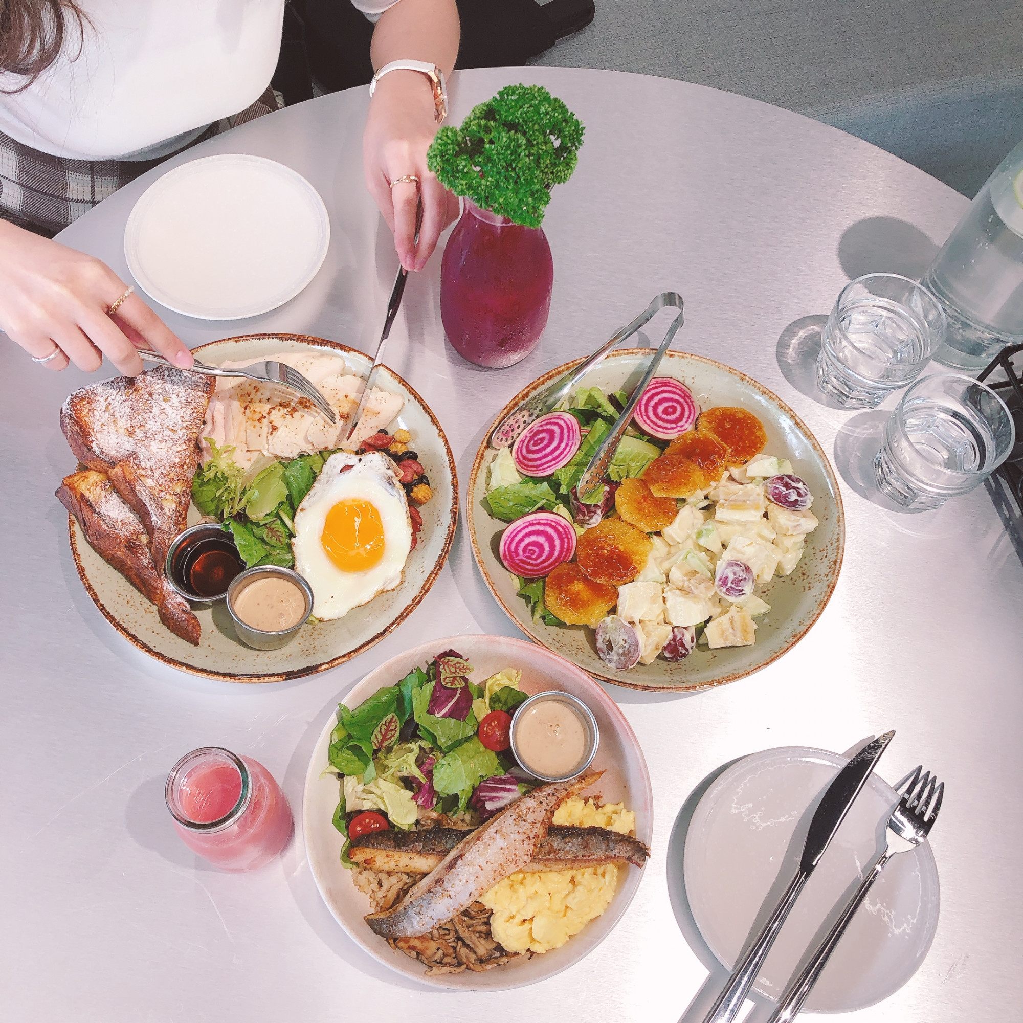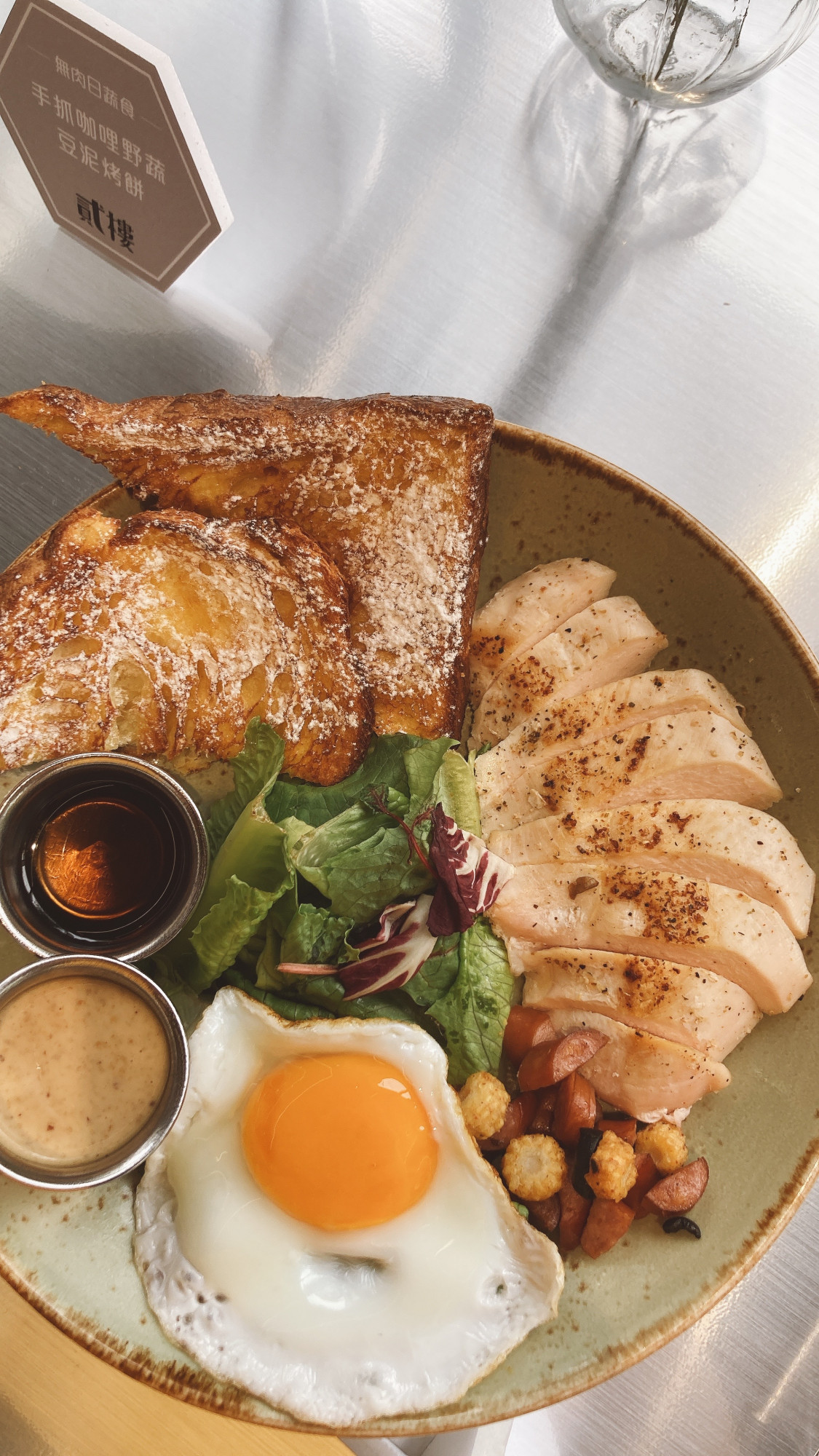先說,小編對這道的「橙香丹麥吐司」真的忘、不、了!!採用貳樓獨家研發鬆軟的法式吐司,沾裹橙香蛋液並烤至金黃色,外酥內軟再沾蜂蜜,入口簡直就是到了天堂啊(撒花)除了舒肥雞,還可選牛排、海鮮等,一盤份量對女生來說真的剛剛好無負擔唷!