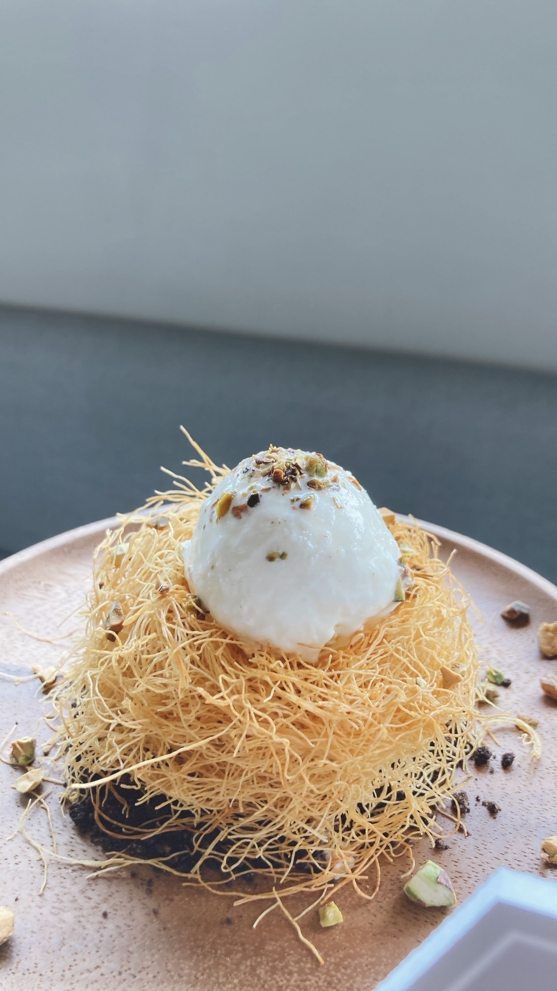 來到甜點環節,小編推薦必點隱藏版「冰淇淋鳥巢庫納法」!!這是流傳於中東和地中海東部的阿拉伯甜點,基底為用酥脆酥皮斯打造的鳥巢,最頂端放上經典香草冰淇淋,甜而不膩,口感絕對是你沒吃過的驚艷~~小缺點就是會讓人吃了一口再接著吃(真心停不下來)