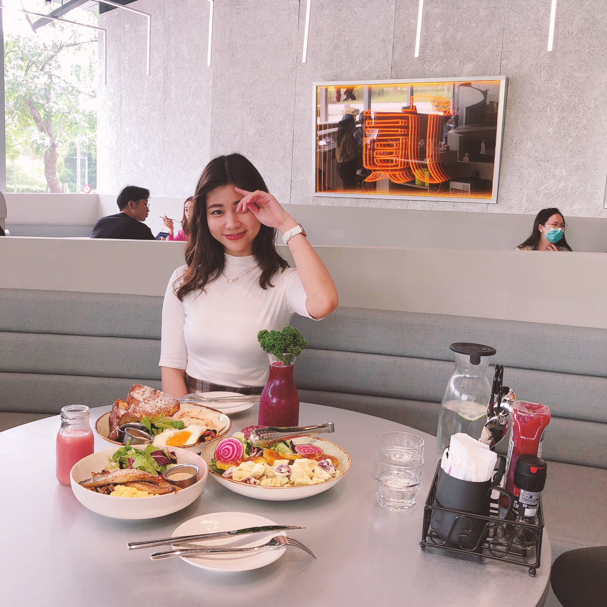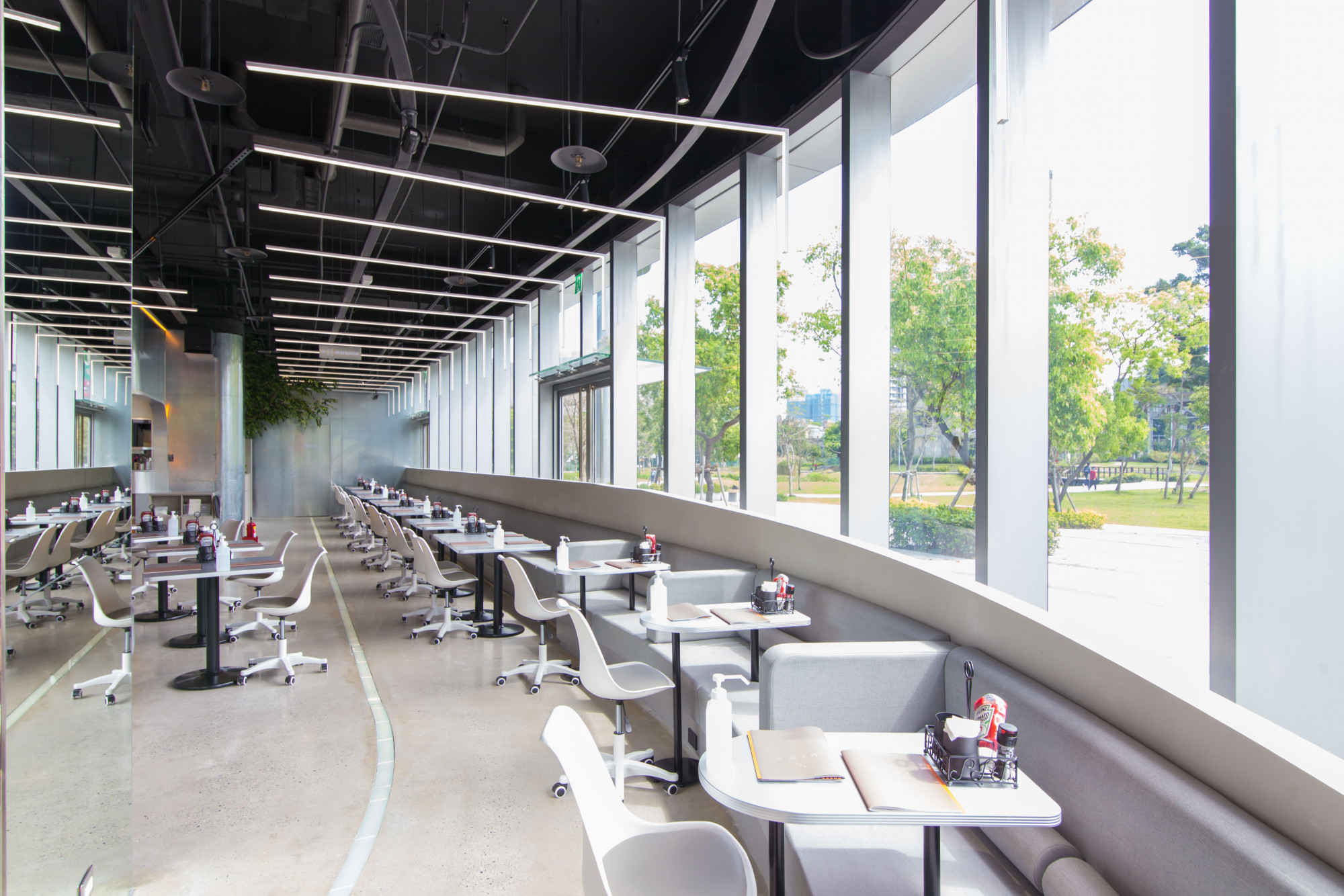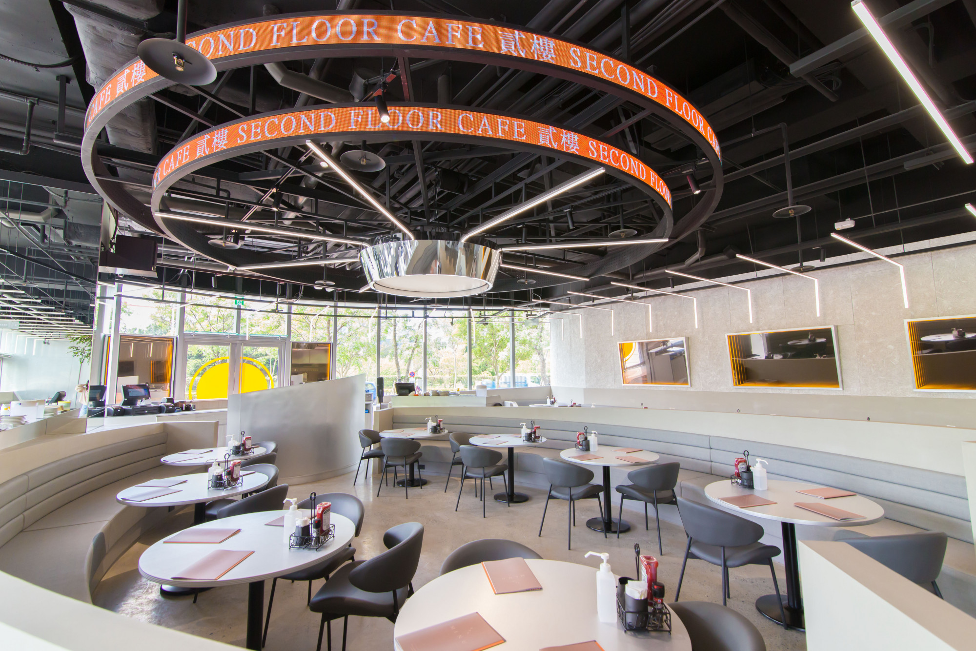 板橋店內整體走未來科技感,除了是「呼應Google科技總部辦公室」,再來就是因為「落實數位服務體驗」!所以在疫情期間貳樓推出「掃碼點餐」和「線上商城冷凍宅配」,用科技數位形式服務大家,帶給大眾全新的感受~板橋店外面還有知名遠東通訊園區生態公園,適合全家大小外帶餐點到草地野餐,也剛好是板橋店是「寵物非常友善餐廳」呢!吃完飯後,還能散步享受愜意悠閒的美好時光(聊癒)