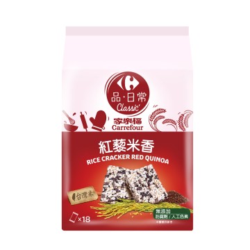 來自法國的家樂福,積極發展自有品牌,嚴格把關上游製造商,與知名廠商合作,製作出優質產品!這款紅藜米香採用優質台灣米製作,口感一級棒!無添加防腐劑及人工色素,食在安心!紅藜富含豐富膳食纖維、含抗氧化類黃酮物質、人體必需胺基酸等營養元素,幫助維持身體機能!這款紅藜米香既營養又美味,趕快買一包來嚐嚐吧!