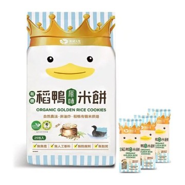 美好人生的有機稻鴨米餅採用宜蘭三星鄉一年一產的有機限量優質稻鴨米,不僅美味,還富含豐富營養素!此外,使用來自愛爾蘭西南沿海的紅海藻,含鈣量高且富含優質海洋礦物質及人體所需微量元素!不只如此,還使用智利A.Ta沙漠湖鹽,比一般食鹽少了30%的鈉含量,並含有鈣、鎂等海洋礦物質,對健康益處多多!保證無添加防腐劑等人工添加物,且無麩質、無過敏原,營養、健康又美味!