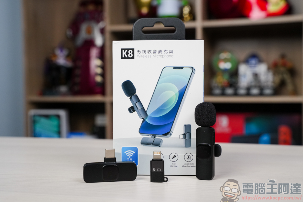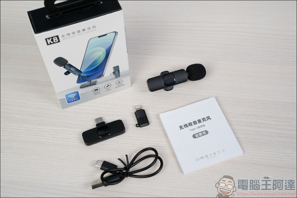 這次開箱的是「K8 隨身無線麥克風」,這是阿達在 Pchome 特價看到的,價格真的夭壽便宜,只要 $399,不曉得這麼便宜的無線收音麥克風到底好不好用,所以就直接買來開箱測試看看,就算真的踩到雷,也不會覺得很心痛 ( 畢竟便宜 )。這款無線收音麥克風除了不能接相機以外,它標榜可以給 Type-C 裝置與 iPhone 使用,因為它的接收器並沒有 3.5mm 的音源孔,不過拿來當作手機的收音設備其實也相當便利了,接下來我們繼續開箱: