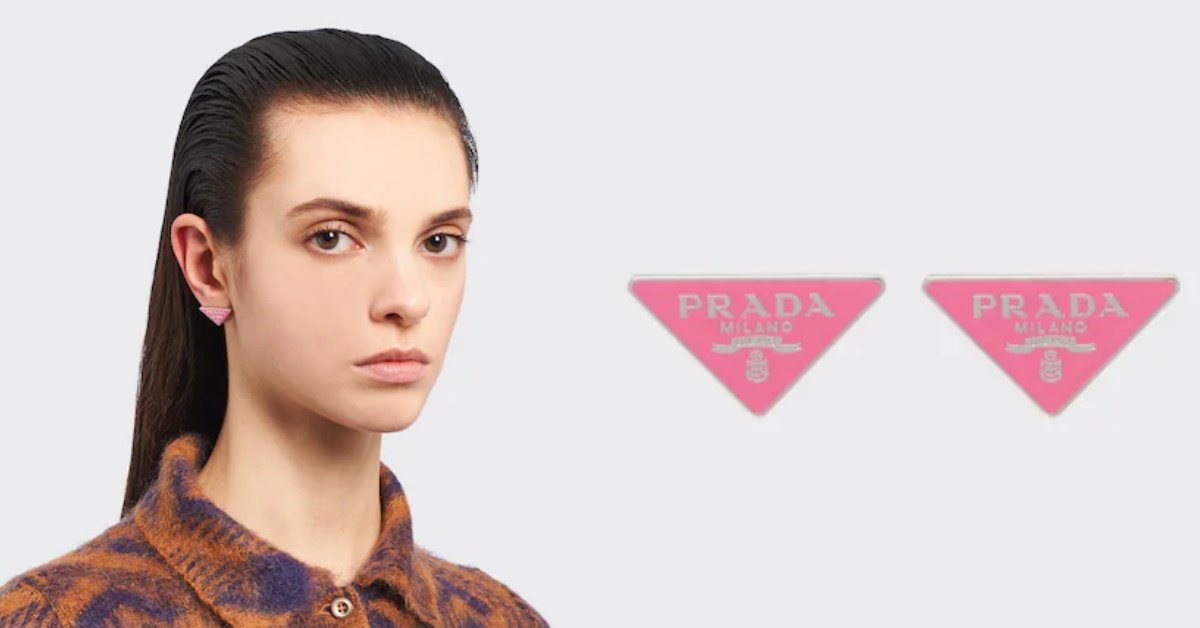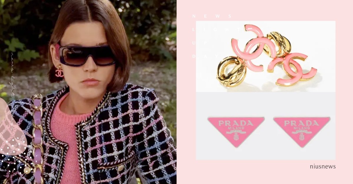 說到櫻花粉色的精品耳環,風靡一票女神們的PRADA三角鐵牌當然也不會錯過!個性小巧的三角鐵牌,以925純銀打造,正面是飽和的櫻花粉色搭配銀色PRADA品牌字樣與Logo設計,貼耳式的耳針設計,讓耳垂上被一抹粉色點綴,很適合不喜歡太過可愛,卻想跟上櫻花粉熱潮的妞妞們選擇!