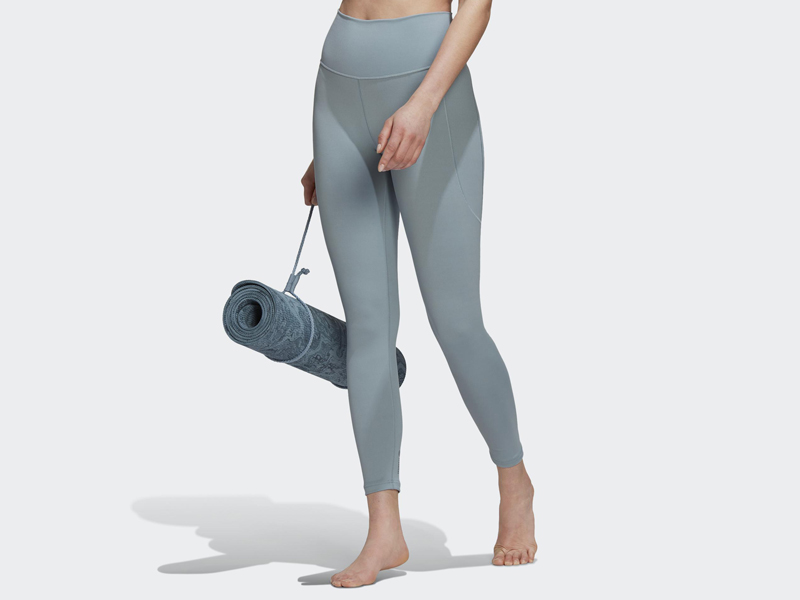 adidas緊身褲顏色偏向有質感的霧霾藍,春夏可以入手一件淺色系Leggings單品,使整體穿搭看起來更明亮有朝氣!這款主打使用Adisoft布料,材質柔軟又具支撐力,延展性和舒適度都很高,非常適合做瑜珈時穿。