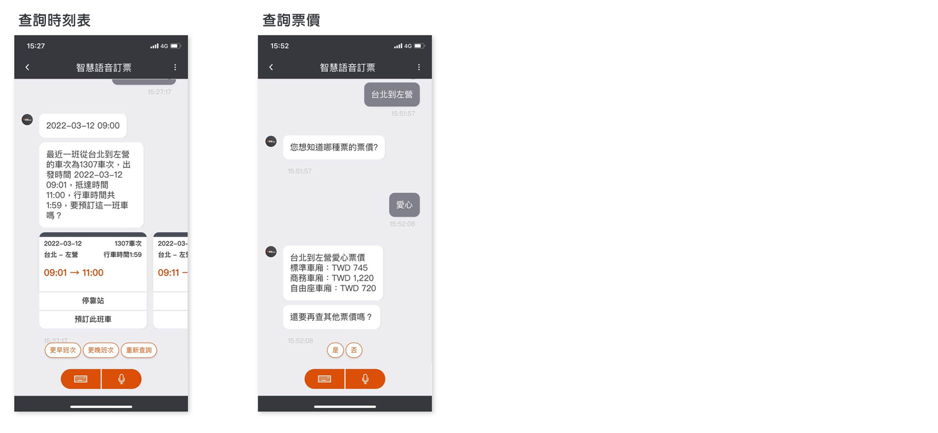 「智慧語音訂票」服務也提供查詢時刻表與票價。