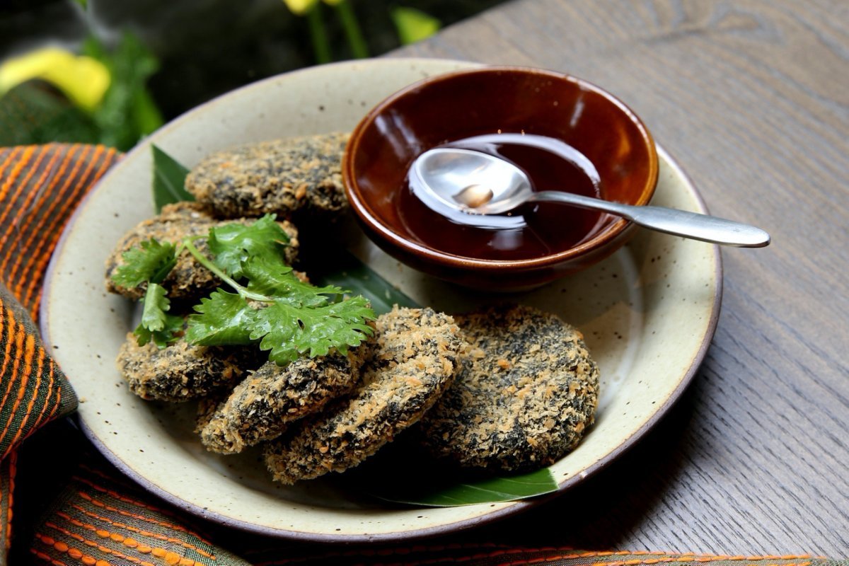 說到泰國菜怎麼能少了「蝦餅」呢?不過月亮蝦餅那種「假泰菜」他們可是不做的(笑),初泰PIKUL堅持使用大量新鮮蝦肉,跟普通用澱粉攪和的吃起來完全不同,同時也創意研發岀結合竹炭粉的「黑金蝦餅」,做出真材實料的海味。不過,想吃餅皮版的這裡也有啦~不過是迷你版,外皮則是純手工潤餅皮,吃起來酥脆開胃。