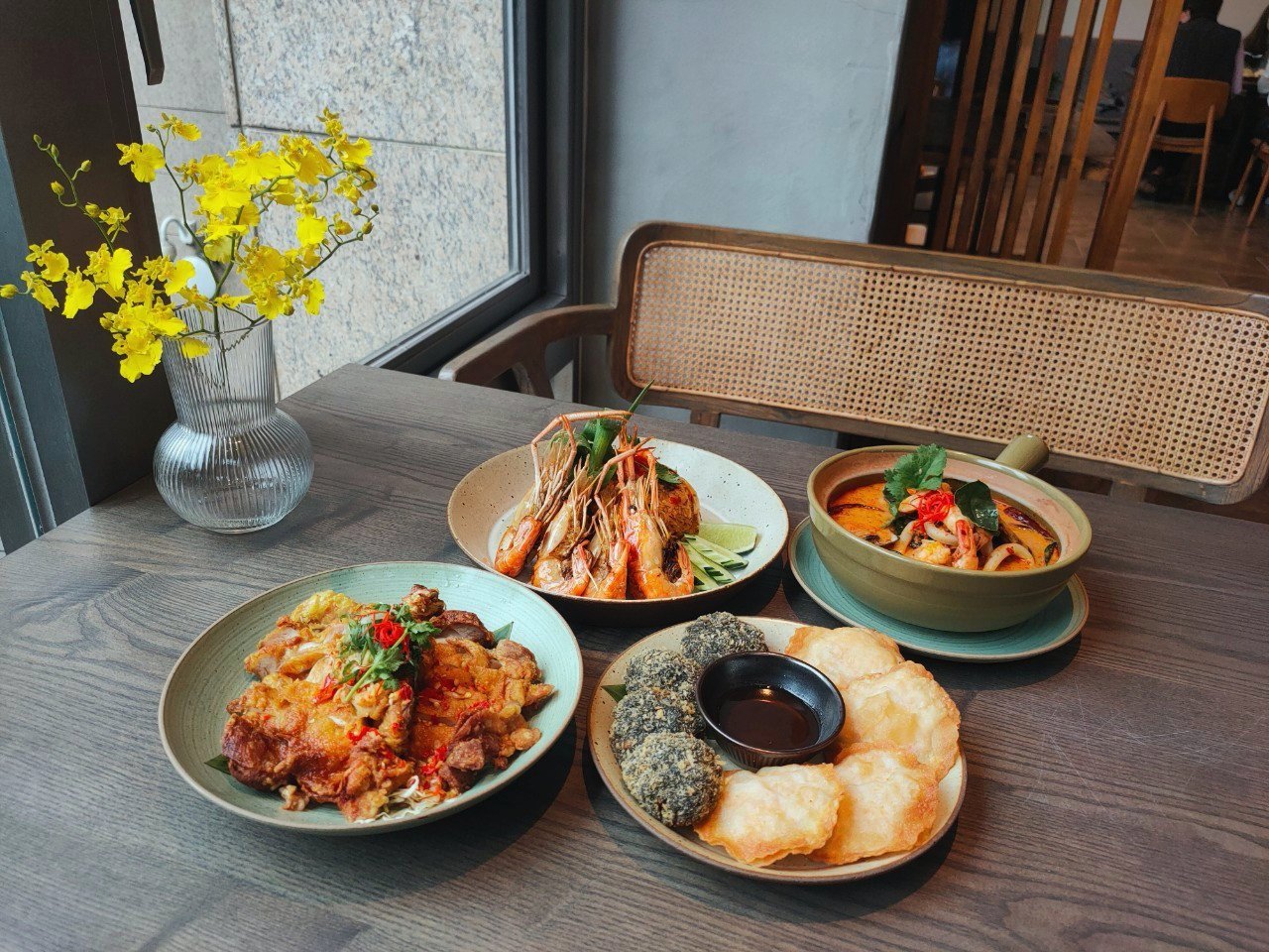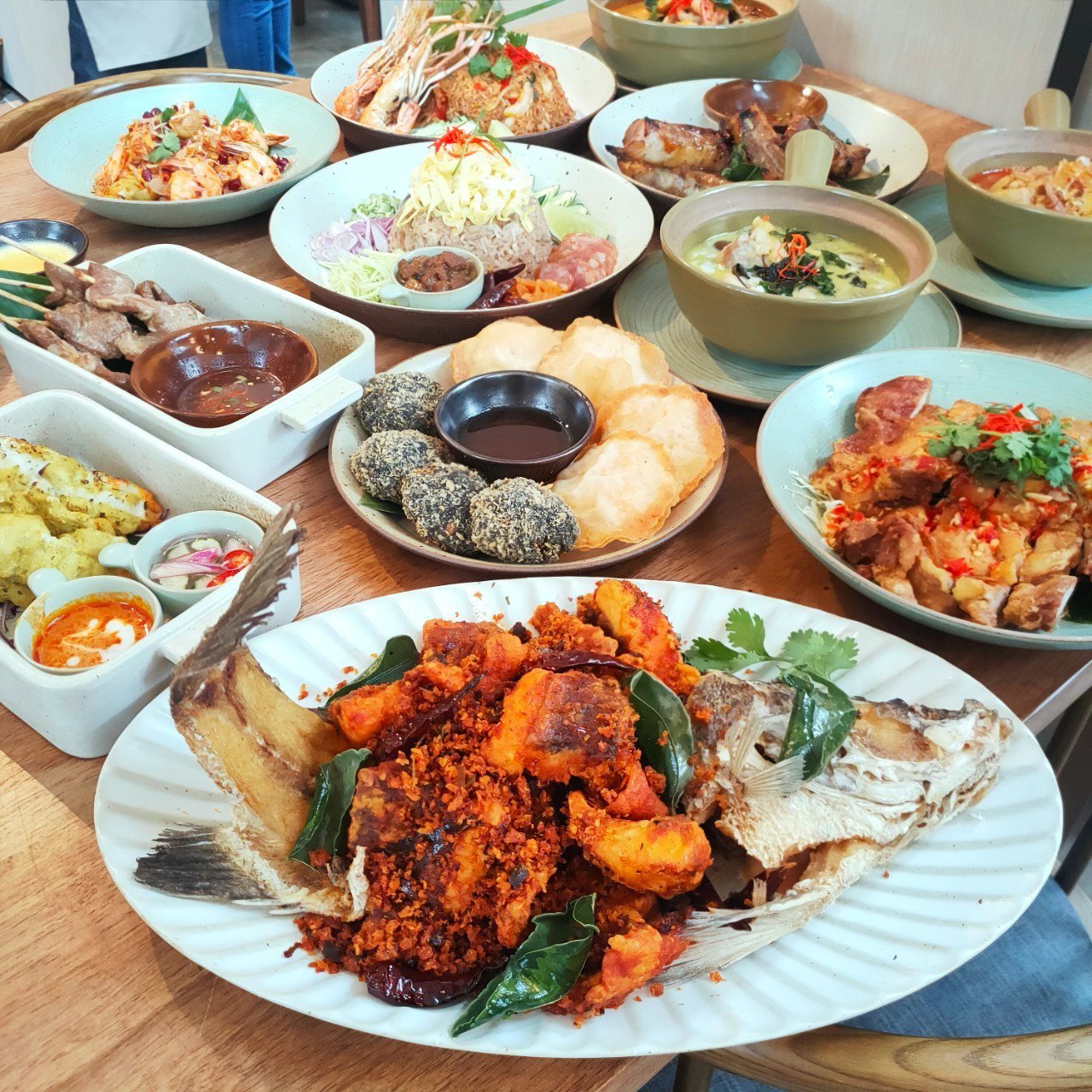 首推必吃的品項就是「酥炸王子炸魚」,而且這道菜一開始是泰國御廚為不喜歡魚刺的王子,特別剔除魚骨所做出的經典料理,每一塊鮮魚入口皆無刺,初泰再加以研發更新,撒上單純以魚肉炸成,並吸飽紅艷咖哩醬汁的新鮮魚酥,外酥內嫩的滋味真的超好吃。