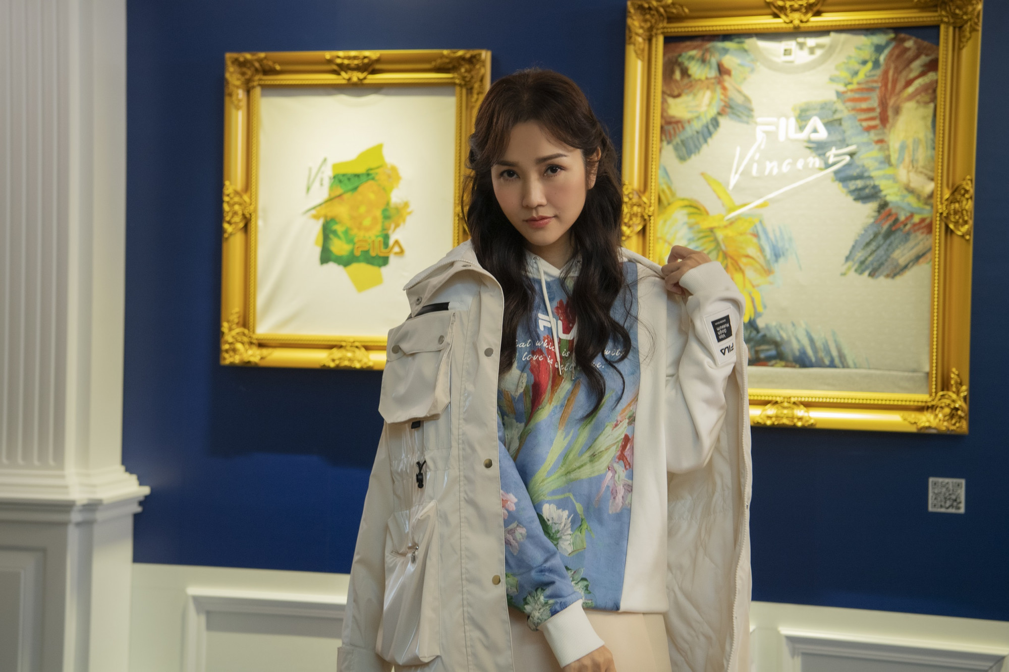 而一向熱愛藝術的謝安琪亦率先進入梵高的世界,優雅演繹以名畫融合 FILA 意式高端運動基因的聯乘系列,展現 “Impressive Elegance”。